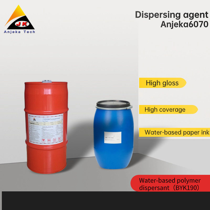 Anjeka 6070 - это макромолекулярное увлажняющее и диспергирующее средство, используемое для водоносных покрытий, печатных чернил и клеев.который используется для концентратов пигмента без связующих веществПодходит для всех пигментов.