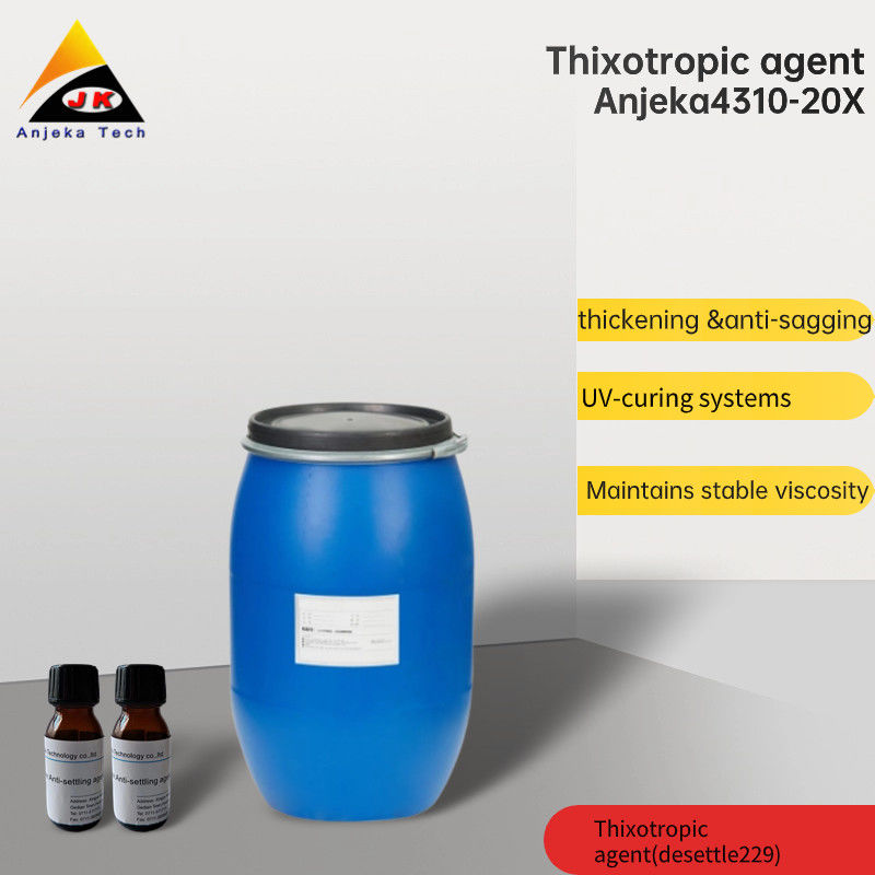 Анжека-4310-20X антиоседающее тиксотропное средство требует короткой дисперсии для формирования желаемой тиксотропной структуры.использование условий со скоростью линии более 4 метров в секунду, в течение 60 минут, и контроль температуры ниже 40°C, предпочтительно в диапазоне 25°C-35°C, в течение 30-40 минут.Это обеспечивает полную дисперсию ANJEKA-4310-20X, избегая чрезмерной дисперсии..